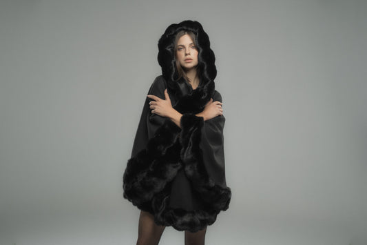 HOODED BLACK FUR CAPE
