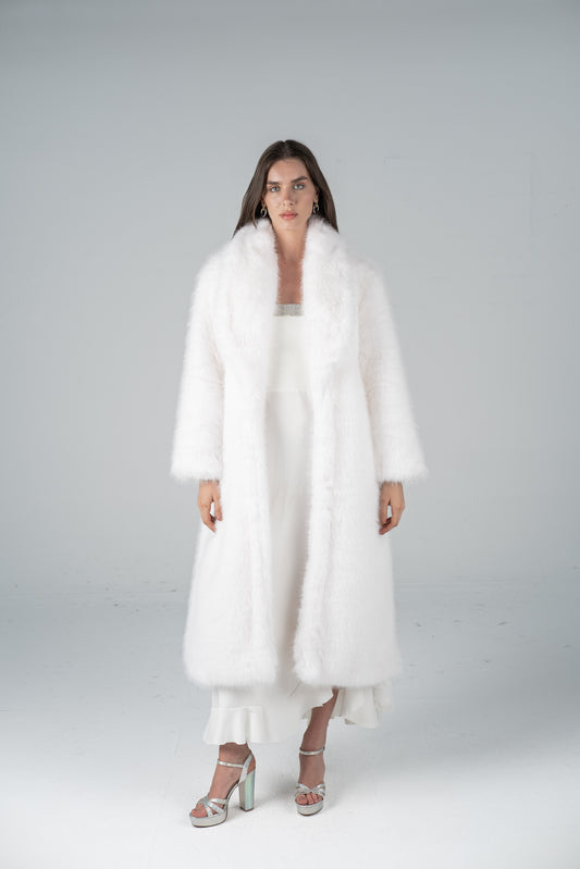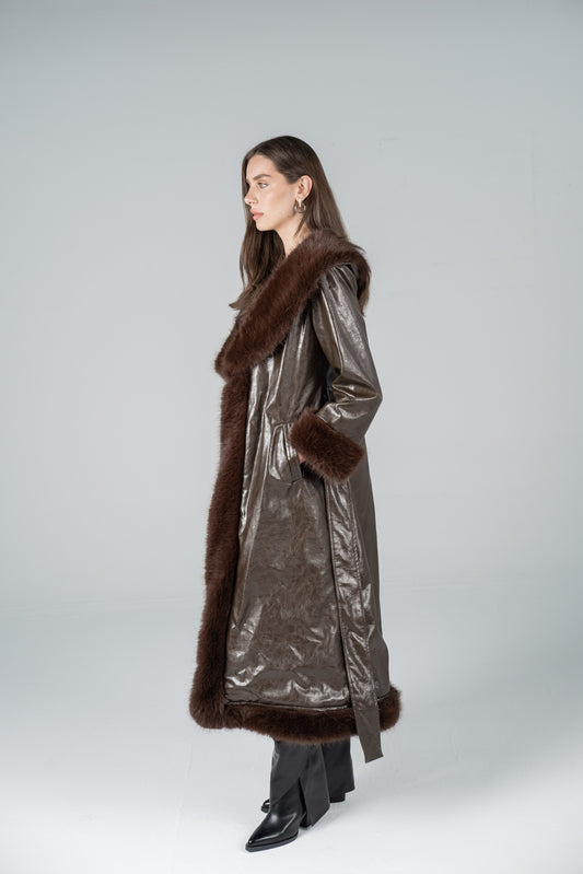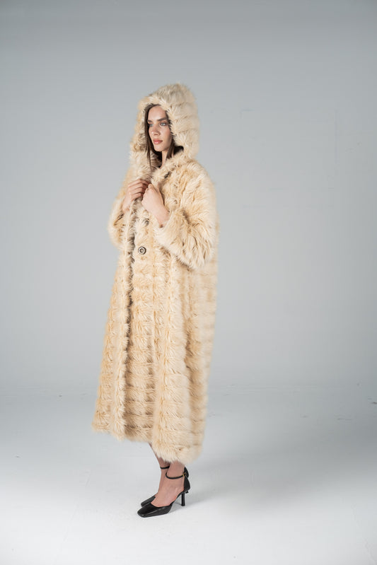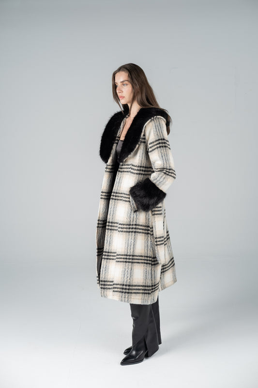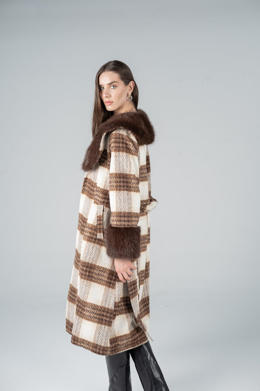 CREAM FELT COAT WITH CHOCOLATE FUR COLLAR