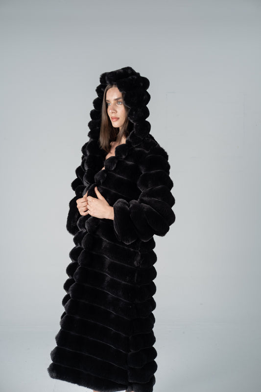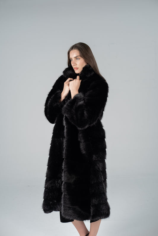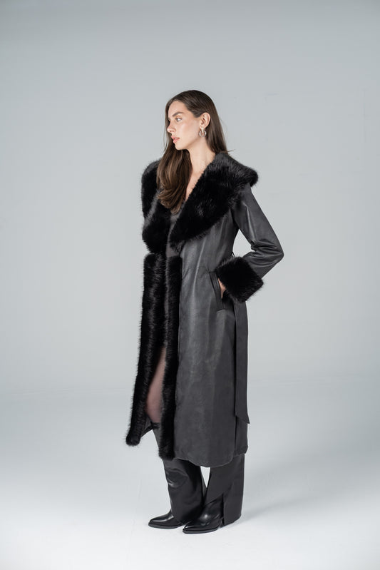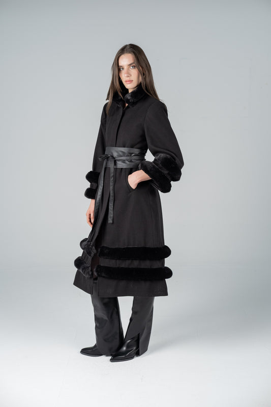 BLACK FELT COAT WITH MIDNIGHT FUR COLLAR