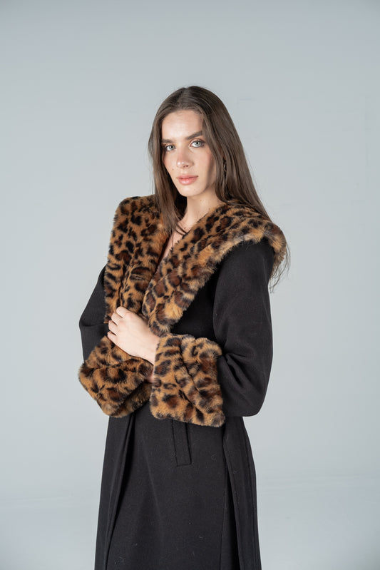 LEOPARD COAT WITH BLACK SHAWL COLLAR