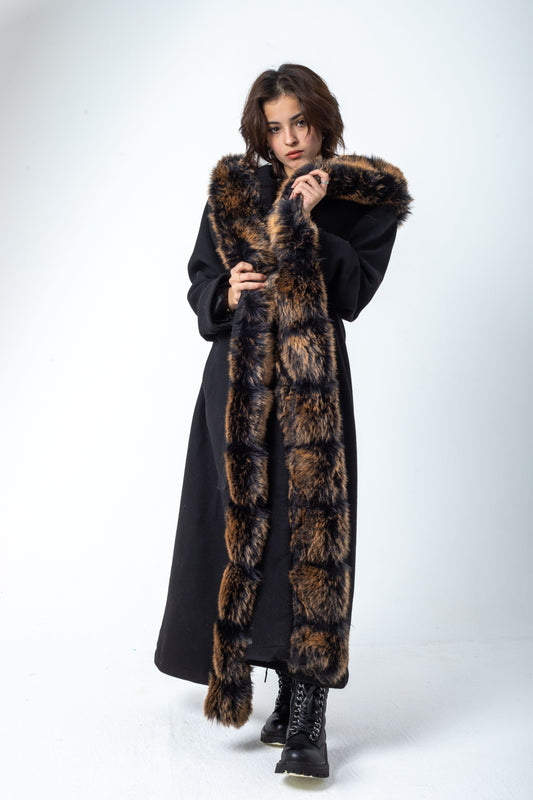 Sold outWool Russet Coat With Tiger Fur