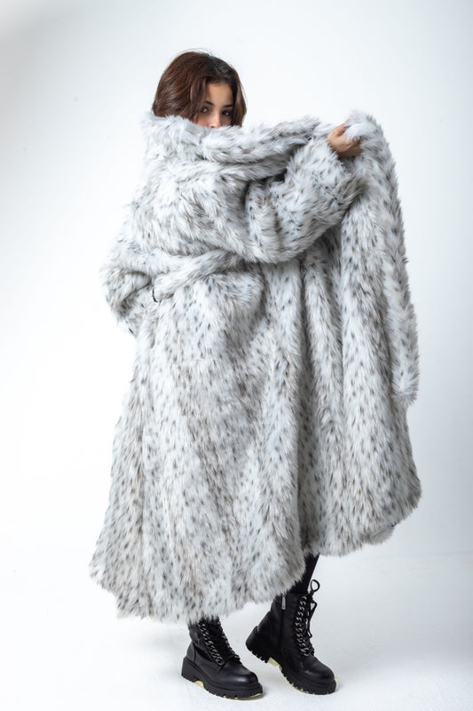 Sold outWhite-Black Spots Fur Coat