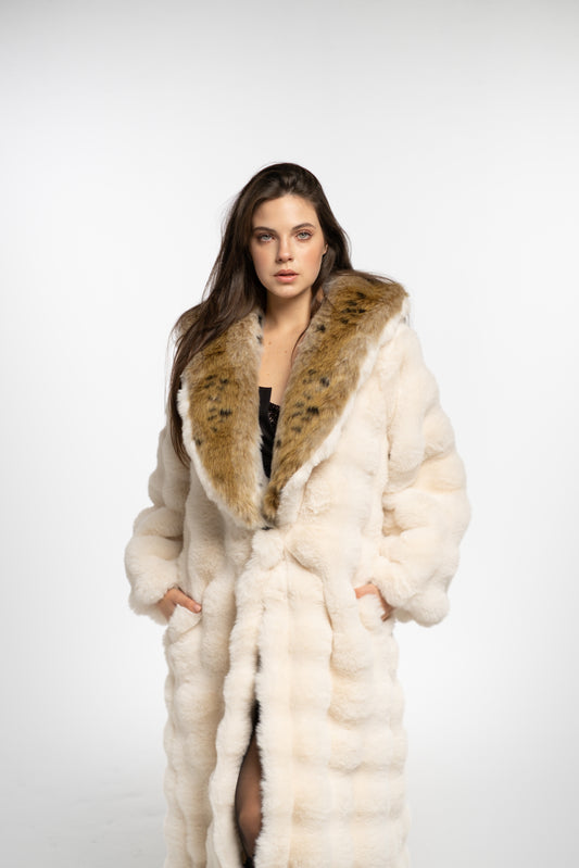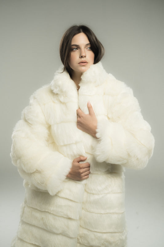 Cloud-like Off-White Tiger Fur Coat