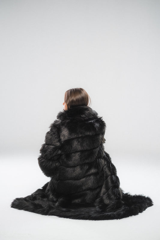 Sold outBlack Thick Striped Fur Coat