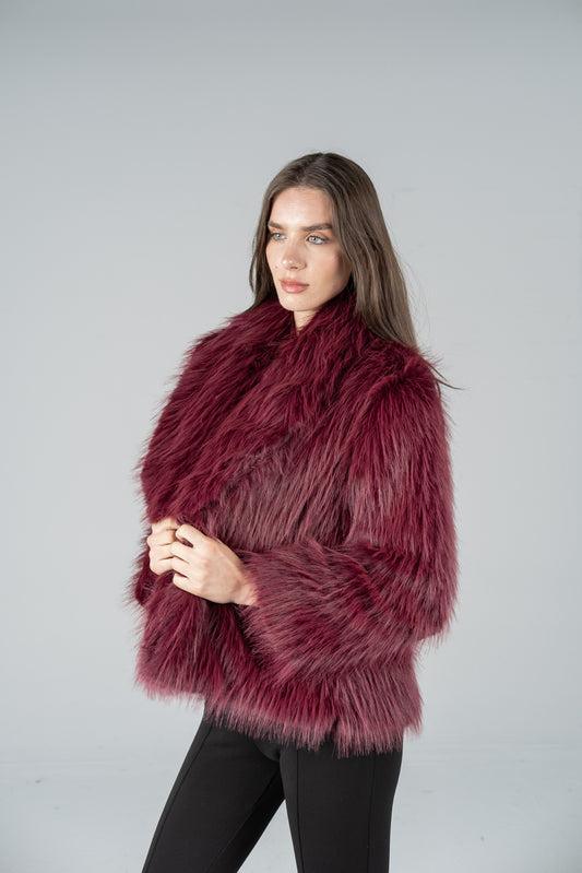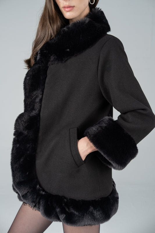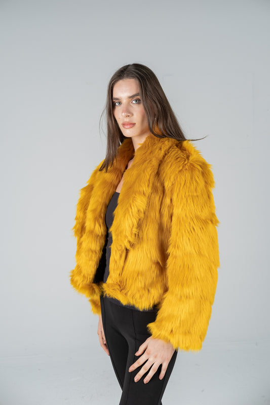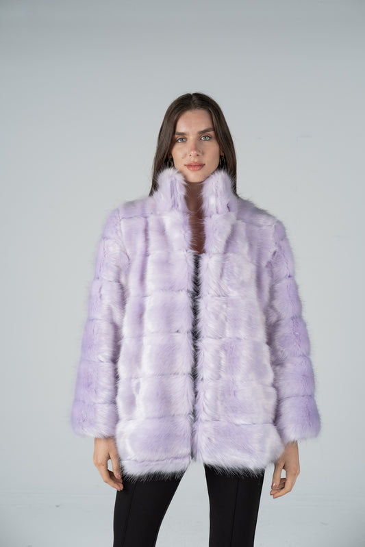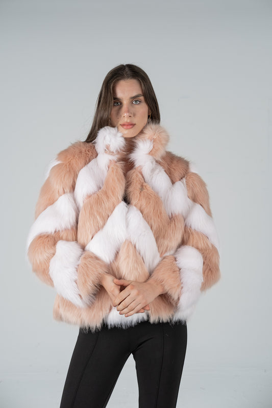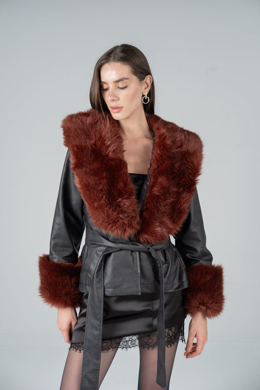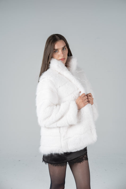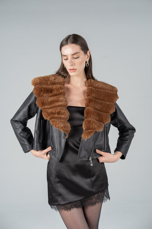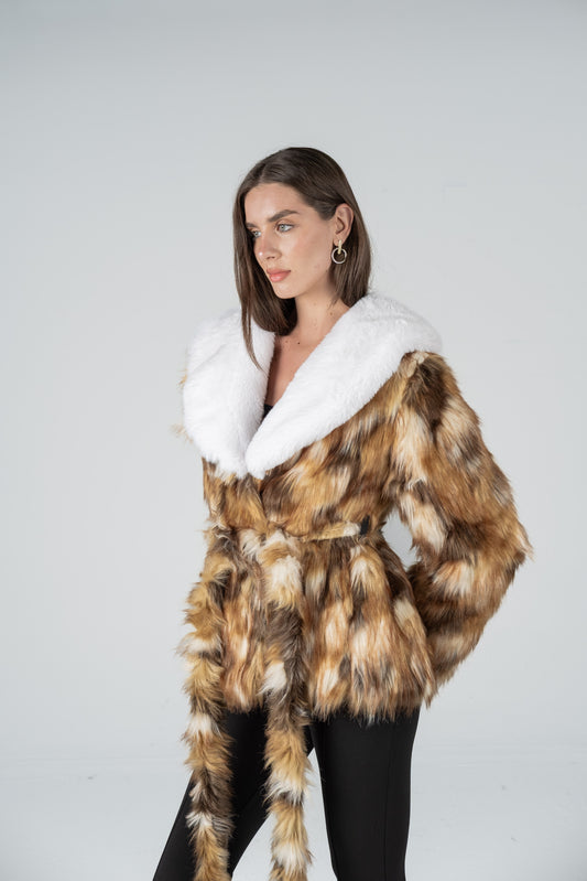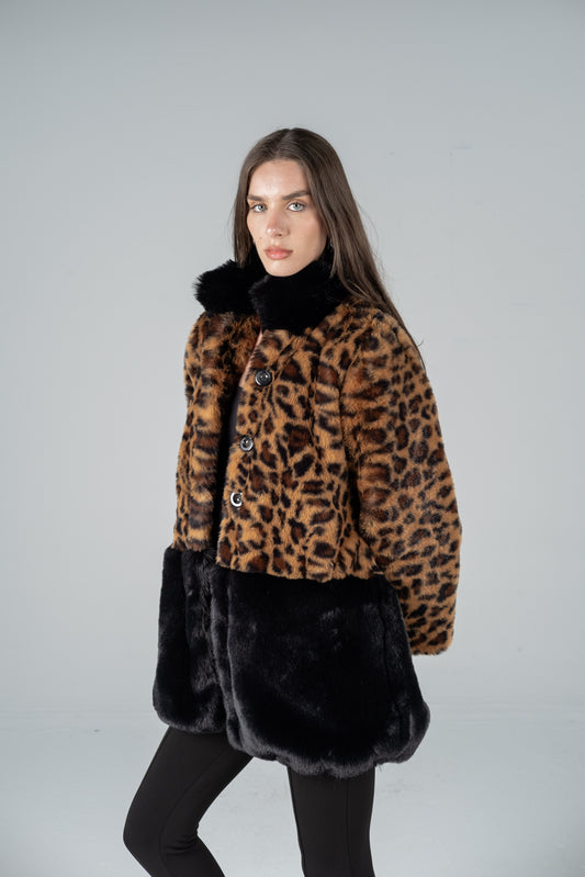 ANIMAL PRINT FUR JACKET WITH WHITE COLLAR