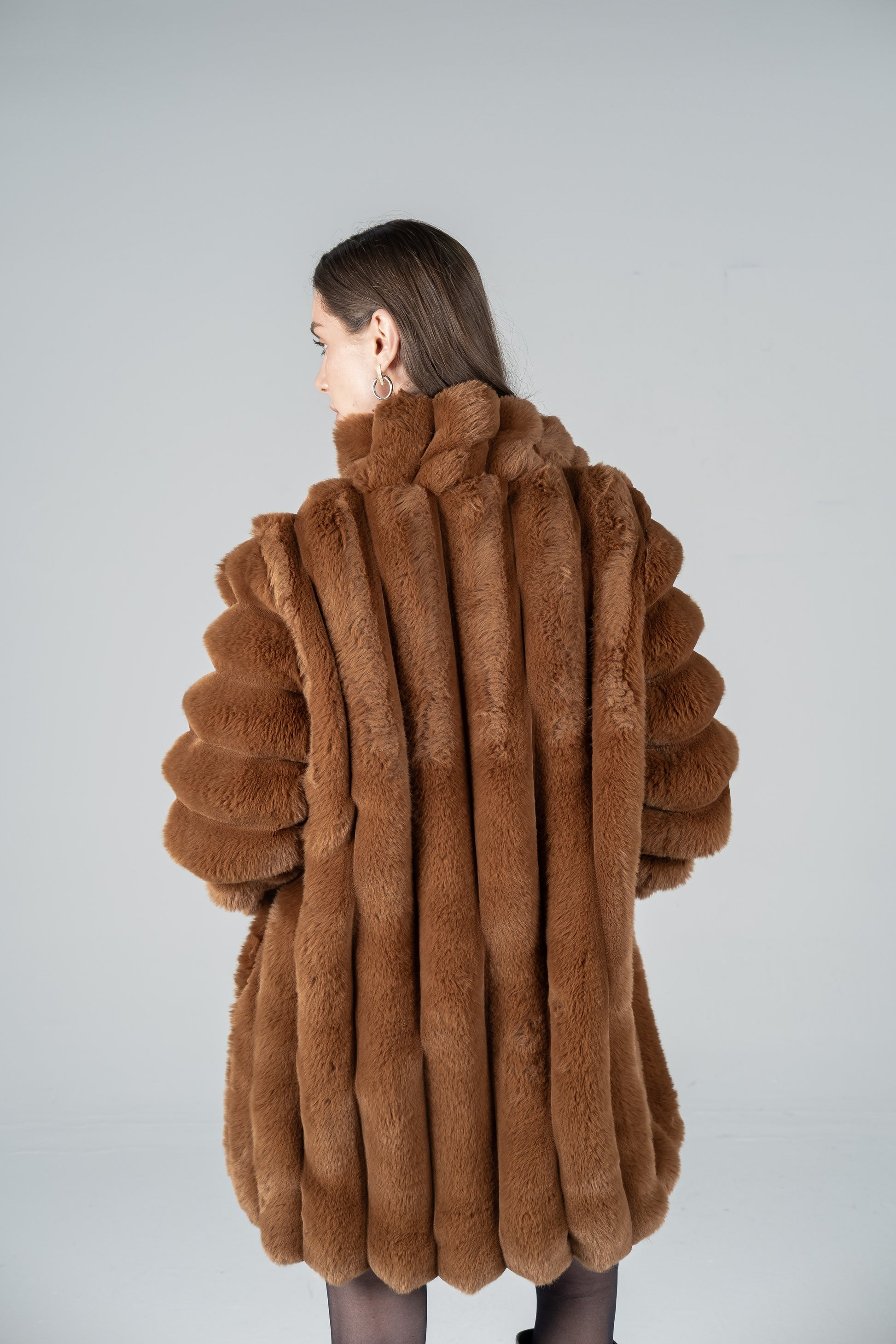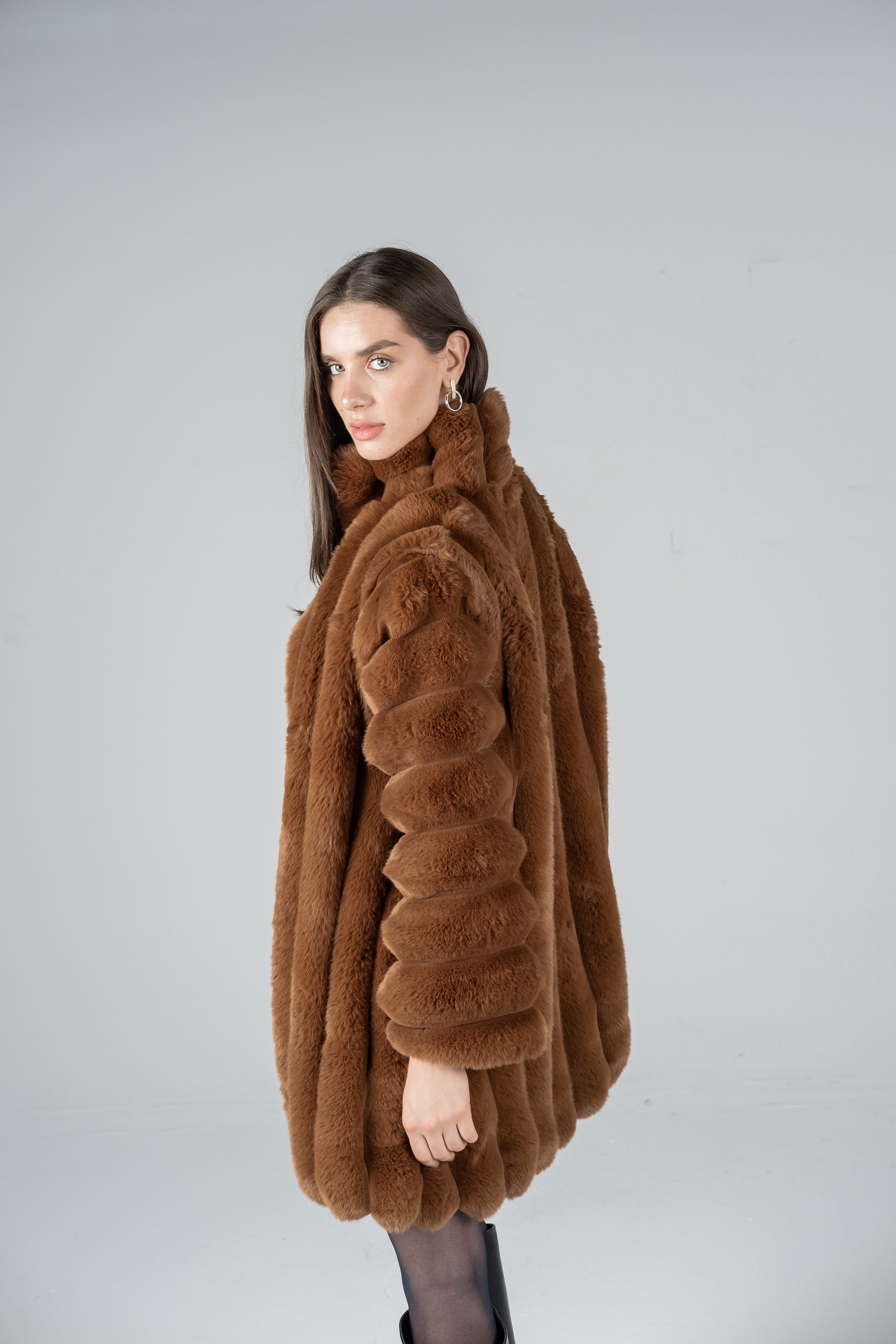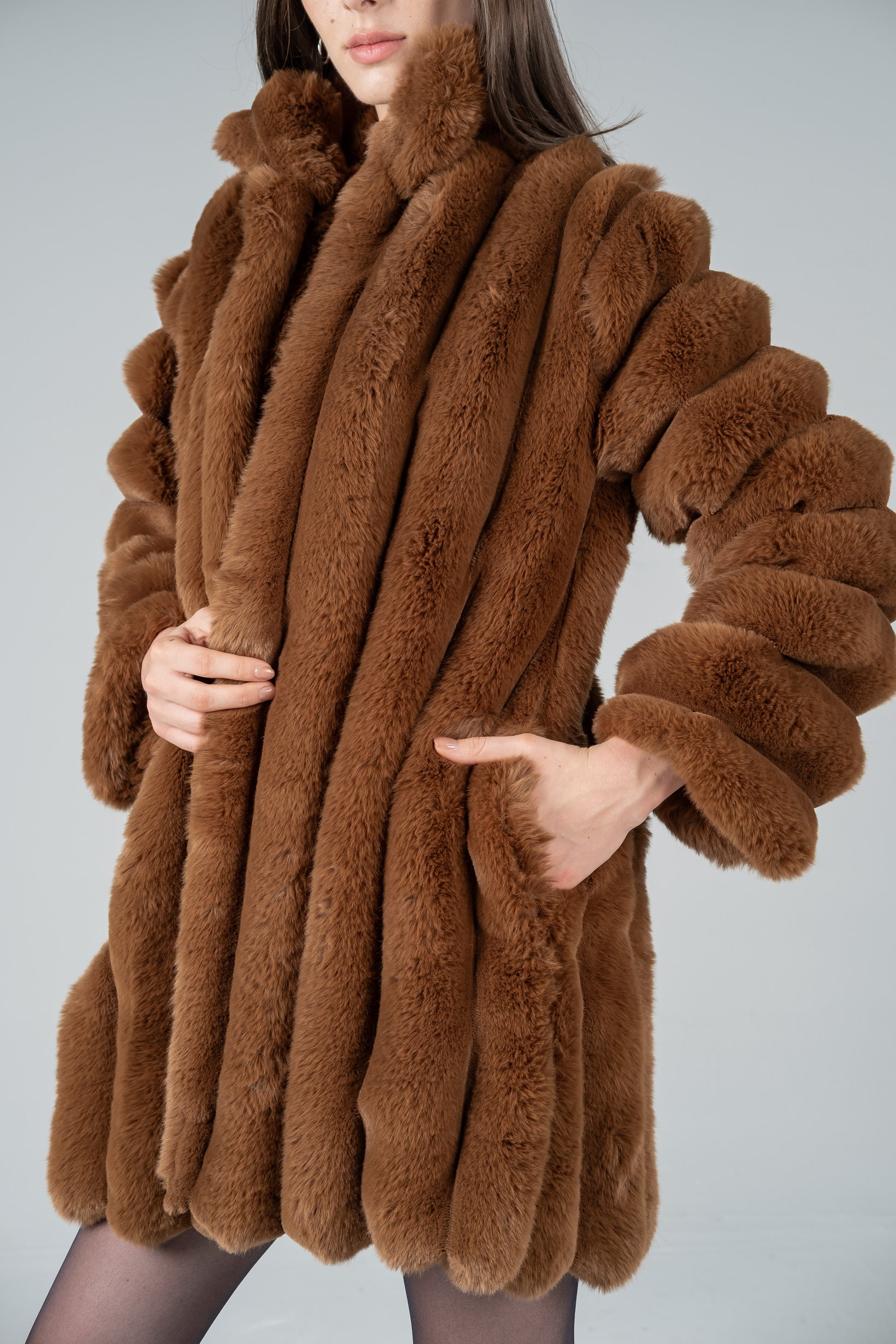 Description: Luxuriously soft and voluminous Bubble fur coat with puffed sleeves and a sleek, collarless neckline. Features discreet side pockets for added comfort and functionality.