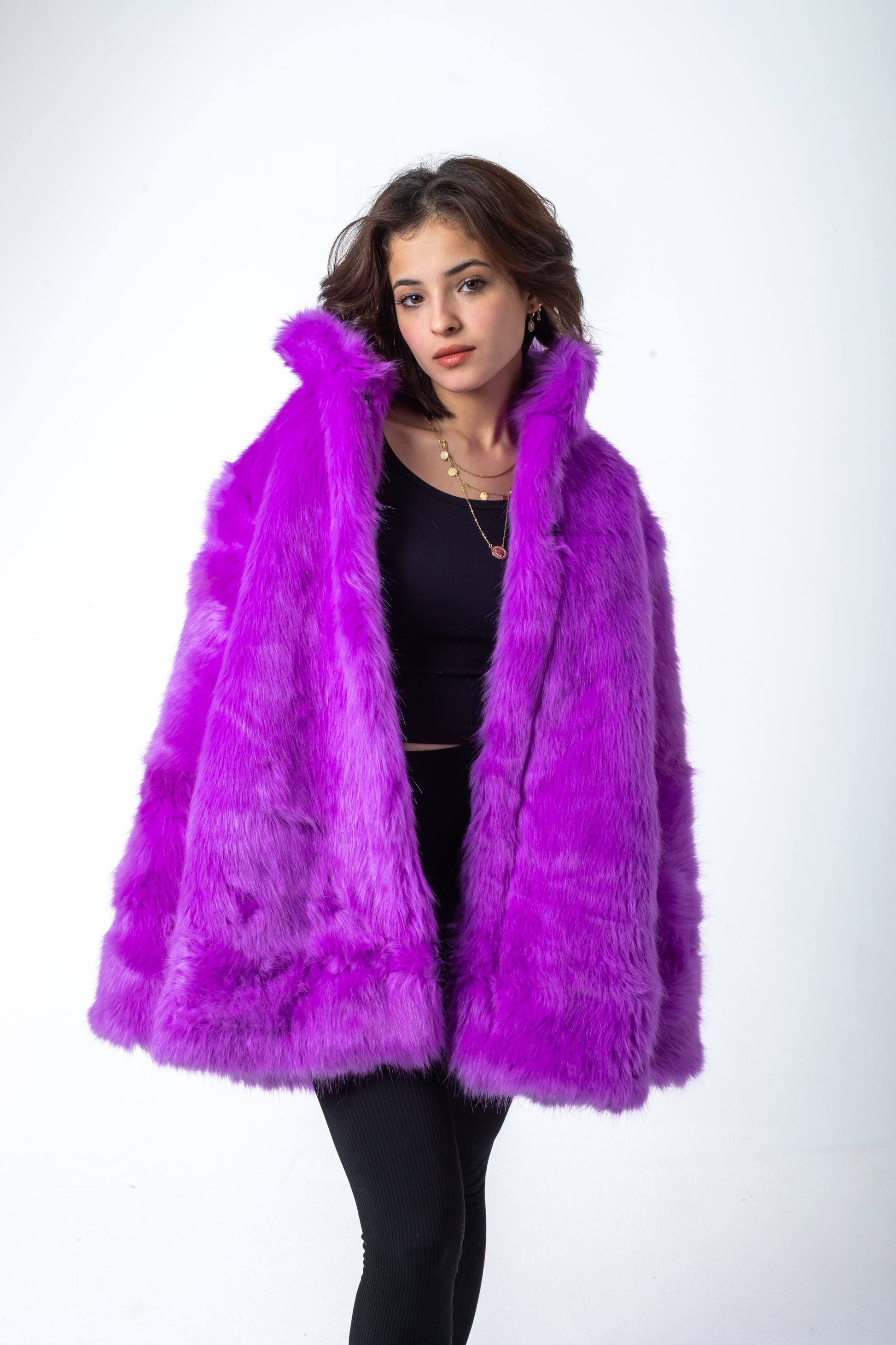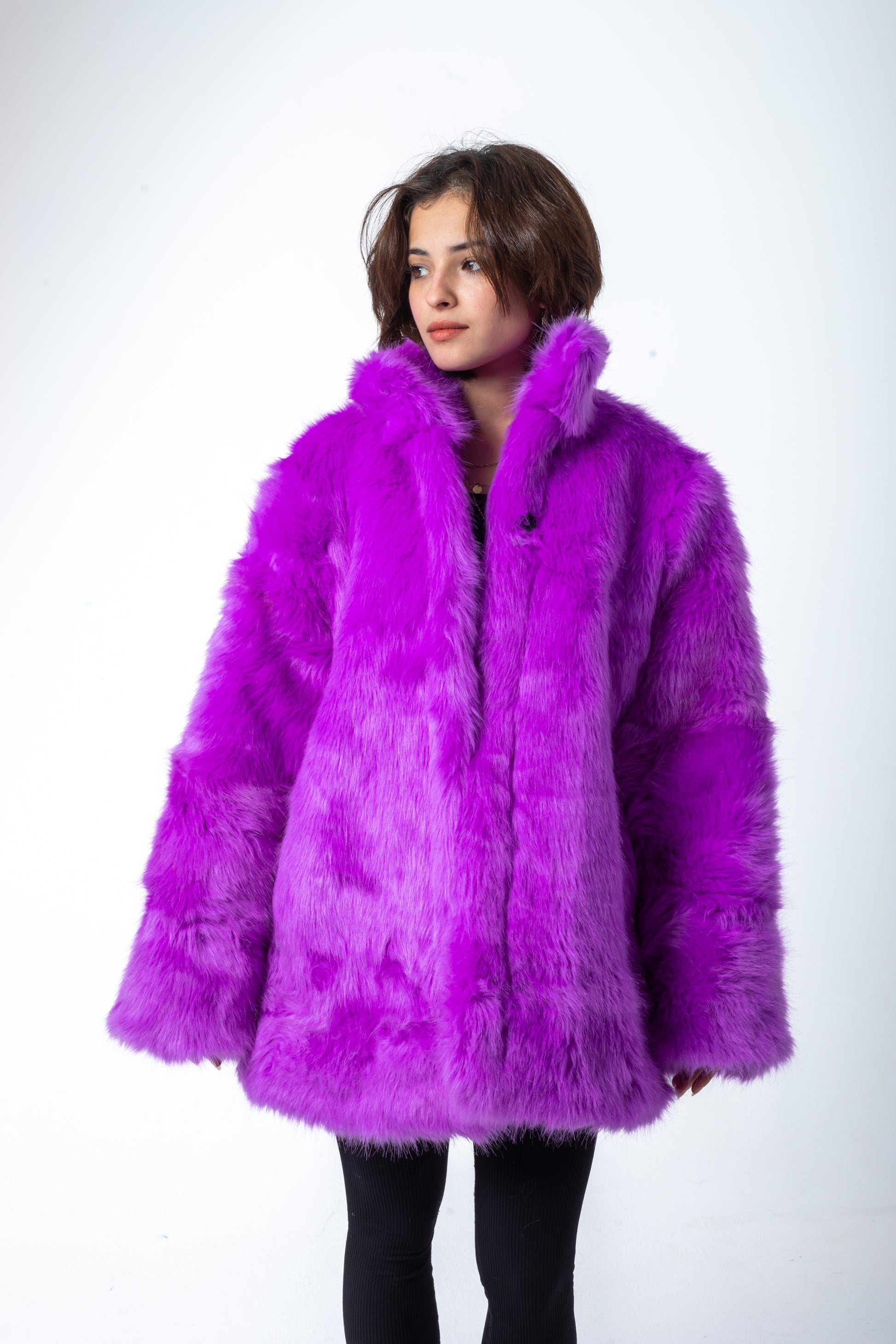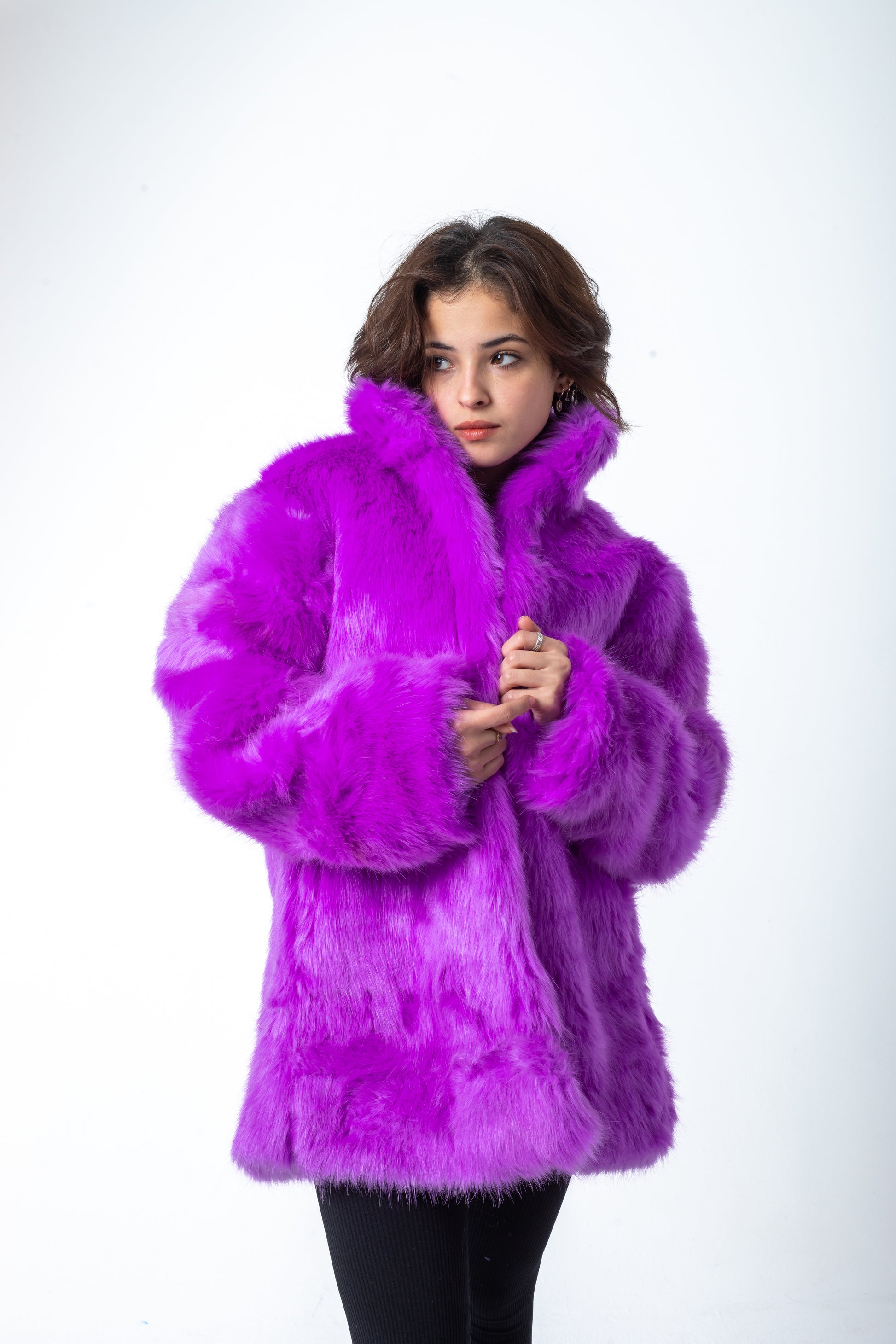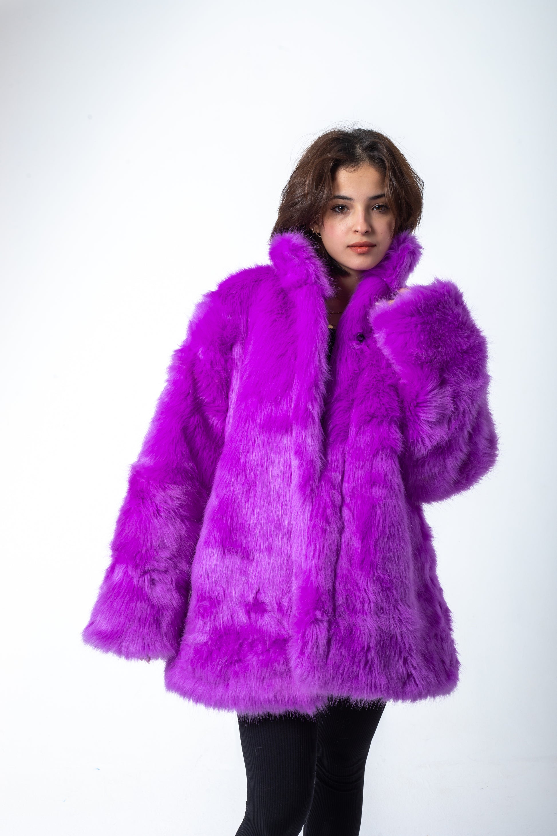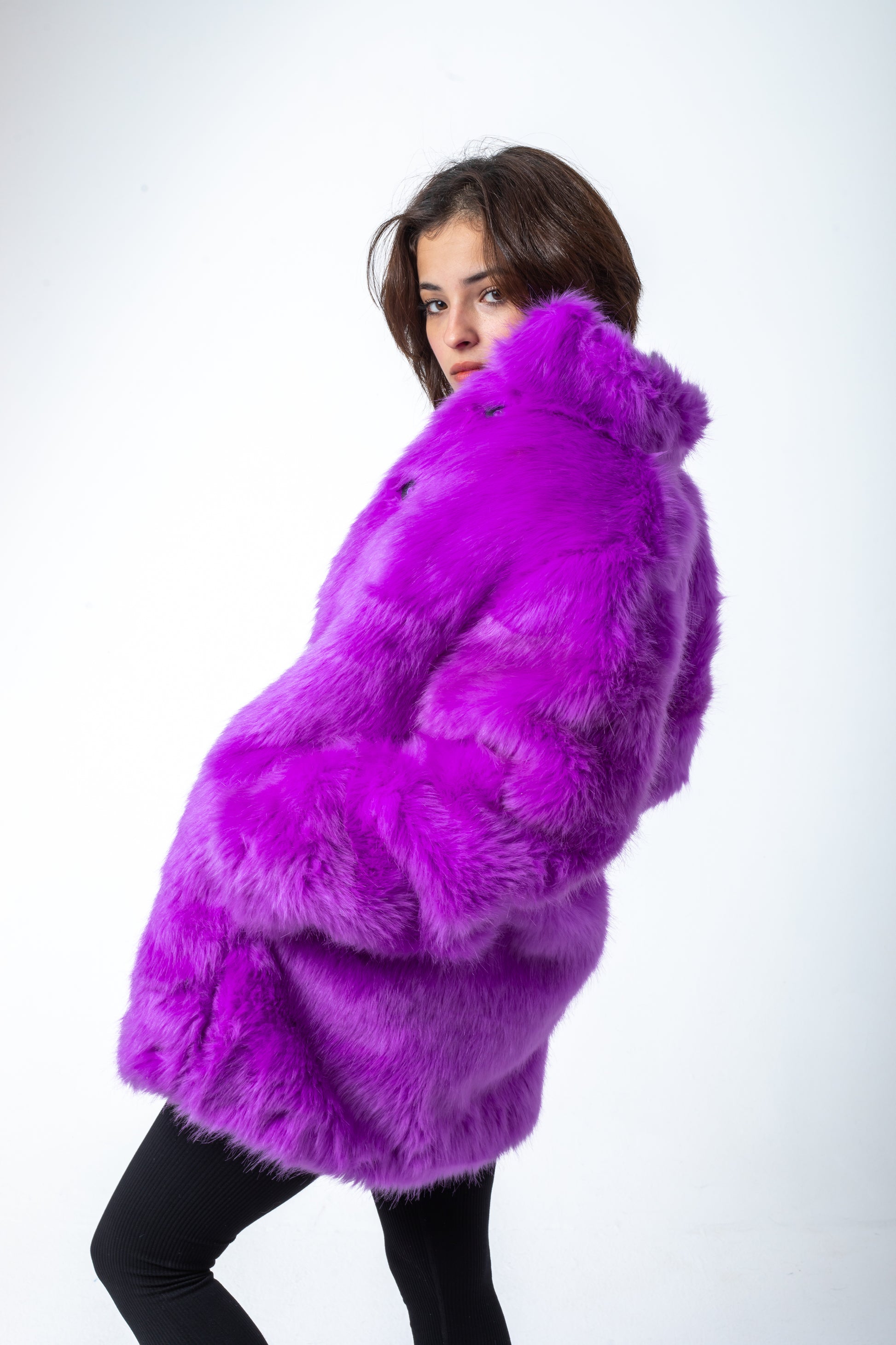 A stylish short jacket with Soft fur, featuring a short collar for a cozy, fashionable look.