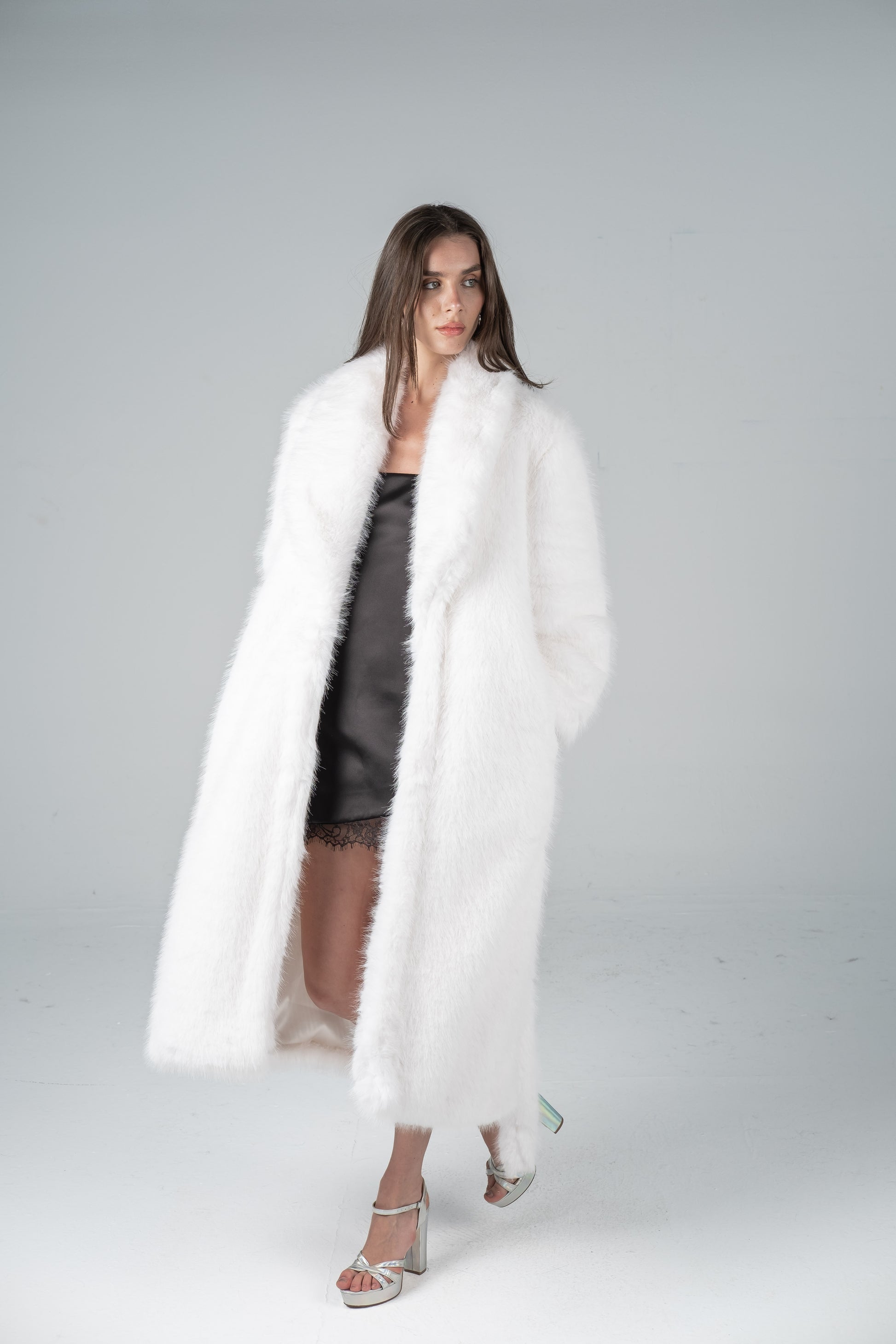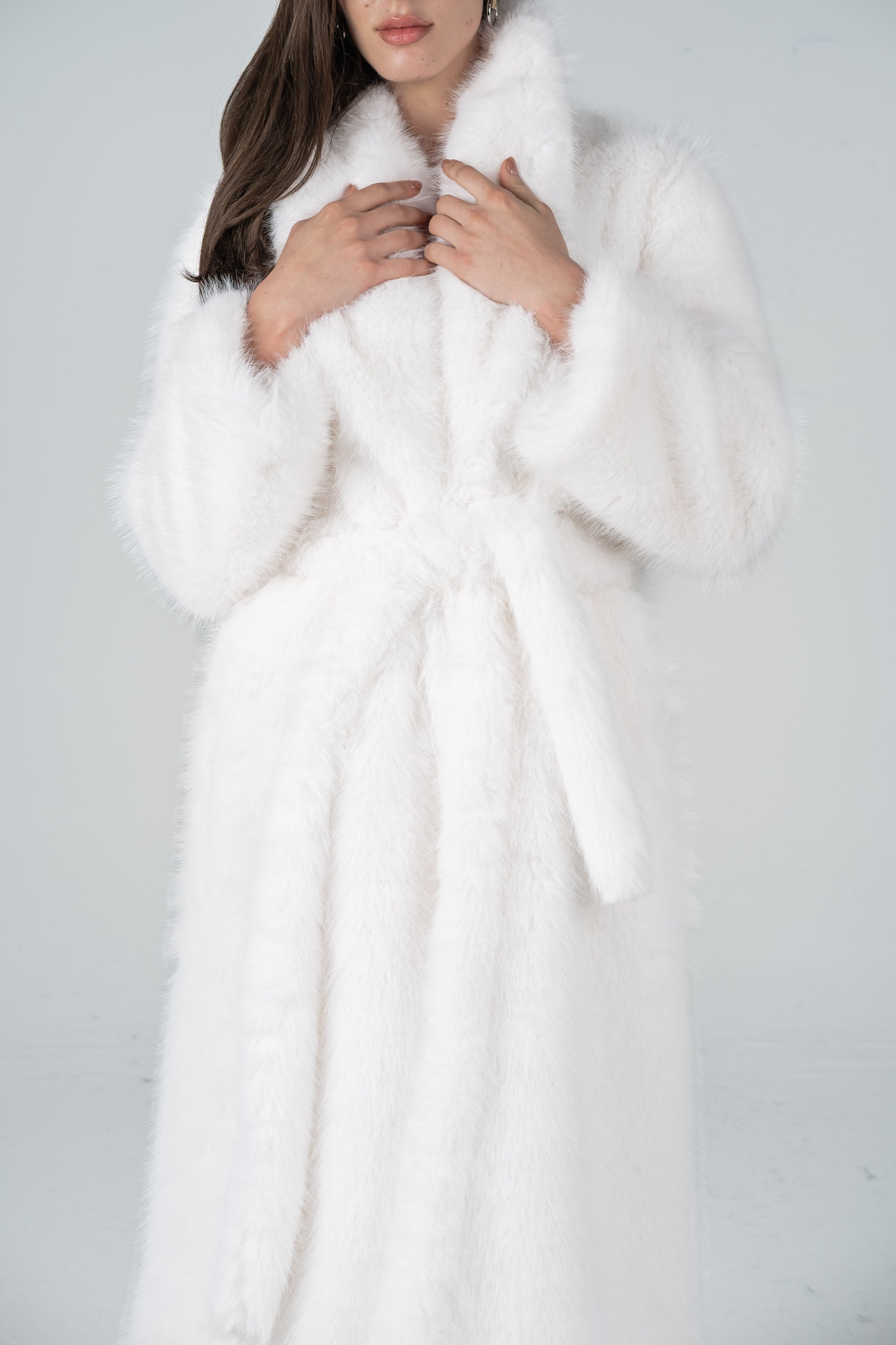 Elegant long white stole perfect for bridal looks or formal winter occasions. Soft, glamorous, and timeless.